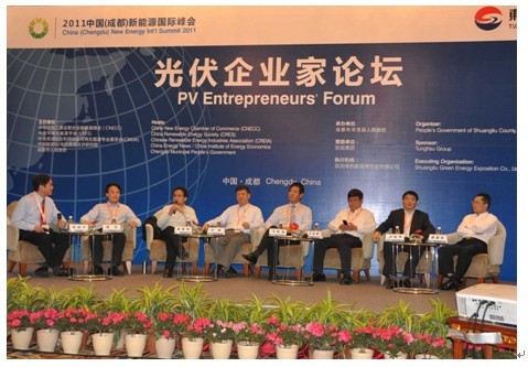 9月28日下午,2011中國(guó)(成都)新能源國(guó)際峰會(huì)-企業(yè)家論壇在成都世紀(jì)城嬌子國(guó)際會(huì)議中心召開(kāi),全國(guó)工商聯(lián)新能源商會(huì)常務(wù)副會(huì)長(zhǎng)、中海陽(yáng)新能源電力有限公司董事長(zhǎng)薛黎明先生應(yīng)邀出席。