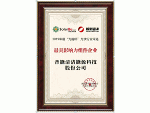 3月31日,第七屆“光能杯”頒獎(jiǎng)典禮在線上舉辦,晉能科技憑借在光伏技術(shù)研發(fā)領(lǐng)域的突出貢獻(xiàn)和量產(chǎn)應(yīng)用上的顯著成果,榮獲2019年度“最具影響力組件企業(yè)獎(jiǎng)”。