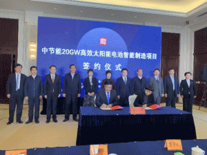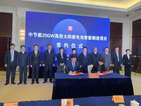 2020年12月17日,中節(jié)能太陽(yáng)能高郵20GW高效電池制造基地(一期)項(xiàng)目投資協(xié)議簽約儀式在江蘇省揚(yáng)州市舉行,標(biāo)志著中節(jié)能太陽(yáng)能高郵20GW高效電池制造基地(一期)項(xiàng)目正式投資建設(shè)。揚(yáng)州市委副書記、市長(zhǎng)張寶娟、副市長(zhǎng)方桂林,高郵市市委書記韋峰、市長(zhǎng)張利,中節(jié)能太陽(yáng)能股份有限公司(以下簡(jiǎn)稱中節(jié)能太陽(yáng)能)黨委書記、董事長(zhǎng)曹華斌,