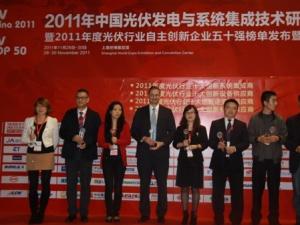 由國(guó)家電網(wǎng)、中國(guó)電力科學(xué)研究院新能源研究所、中國(guó)電工技術(shù)學(xué)會(huì)、教育部光伏系統(tǒng)工程研究中心、中國(guó)建筑設(shè)計(jì)研究院建筑節(jié)能與新能源工程中心、江蘇省光伏發(fā)電系統(tǒng)集成工程技術(shù)研究中心聯(lián)合主辦,《光伏雜志》、全球太陽能光伏網(wǎng)牽頭承辦的“2011年度光伏行業(yè)創(chuàng)新企業(yè)50強(qiáng)”評(píng)選活動(dòng)于2011年11月28日,在上海世博展覽館隆重舉行。
