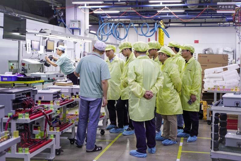 根據(jù)當天行程安排,調(diào)研團專家在孔沫晗總監(jiān)的陪同指引下,一同參觀了固德威展廳、工廠車間,并向?qū)<覀冊敿毥榻B了公司的發(fā)展經(jīng)營情況。