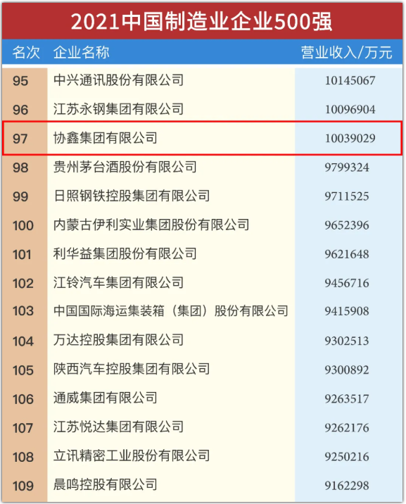 9月25日,2021中國(guó)企業(yè)500強(qiáng)、中國(guó)民營(yíng)企業(yè)500強(qiáng)系列榜單分別在吉林長(zhǎng)春、湖南長(zhǎng)沙同時(shí)發(fā)布。協(xié)鑫集團(tuán)繼續(xù)躋身千億俱樂(lè)部,位居2021中國(guó)企業(yè)500強(qiáng)綠色能源產(chǎn)業(yè)榜首,入列中國(guó)企業(yè)500強(qiáng)第222位、中國(guó)制造業(yè)企業(yè)500強(qiáng)第97位、戰(zhàn)略性新興產(chǎn)業(yè)領(lǐng)軍企業(yè)100強(qiáng)第31位、中國(guó)跨國(guó)公司100大及跨國(guó)指數(shù)第72位;中國(guó)民營(yíng)企業(yè)500強(qiáng)第78位、中國(guó)民營(yíng)企業(yè)制造業(yè)500強(qiáng)第41位。