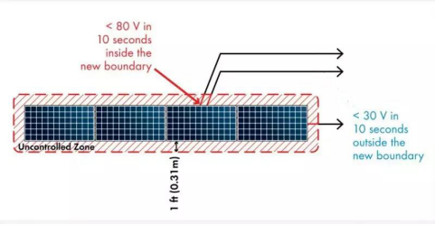 眾所周知,在光伏發(fā)電系統(tǒng)中,只要有光源照射光伏組件,在直流側就會產生600-1500V左右的直流電壓。即使在特定條件下關斷逆變器直流側的隔離開關,光伏組件到逆變器之間的線纜還是會存在高壓直流電。對消防員的人身安全造成重大威脅,對消防救災產生很大困擾。因此,美國NEC 2017--690.12(B)條款中,明確要求所有建筑物上的光伏系統(tǒng)需要具備在緊急情況下實現(xiàn)快速關斷的能力。