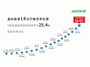 江西上饒,2021年10月13日,全球極具創(chuàng)新力的光伏企業(yè)晶科能源控股有限公司(“晶科能源”或者“公司”)(紐交所代碼:JKS)今日宣布,晶科能源研究院所研發(fā)的高效N型單晶硅單結(jié)電池技術(shù)取得重大突破,在權(quán)威第三方測試認證機構(gòu)日本JET檢測實驗室標定全面積電池最高轉(zhuǎn)化效率達到25.4%,近一年來第四次創(chuàng)造新的大面積N型單晶鈍化接觸(TOPCon)電池轉(zhuǎn)化效率世界紀錄。
