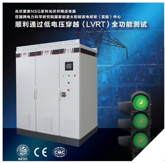 太陽(yáng)能發(fā)電網(wǎng)訊 日前,兆伏愛(ài)索新能源股份有限公司(以下簡(jiǎn)稱兆伏愛(ài)索)NSG系列光伏并網(wǎng)逆變器嚴(yán)格依據(jù)國(guó)家電網(wǎng)《光伏電站接入電網(wǎng)技術(shù)規(guī)定》在國(guó)內(nèi)權(quán)威機(jī)構(gòu)——國(guó)網(wǎng)電科院國(guó)家能源太陽(yáng)能發(fā)電研發(fā)(實(shí)驗(yàn))中心順利通過(guò)低電壓穿越(LVRT)全功能測(cè)試,取得測(cè)試報(bào)告。這是繼兆伏愛(ài)索大功率逆變器獲得“金太陽(yáng)”之后,再次充分體現(xiàn)了兆伏愛(ài)索作為優(yōu)質(zhì)、專業(yè)的光伏逆變器制造商深厚的技術(shù)實(shí)力,為兆伏愛(ài)索拓展光伏逆變市場(chǎng)增加了“雙保險(xiǎn)”。也為提升行業(yè)品牌,創(chuàng)建國(guó)產(chǎn)逆變器第一高端品牌帶來(lái)有利影響。