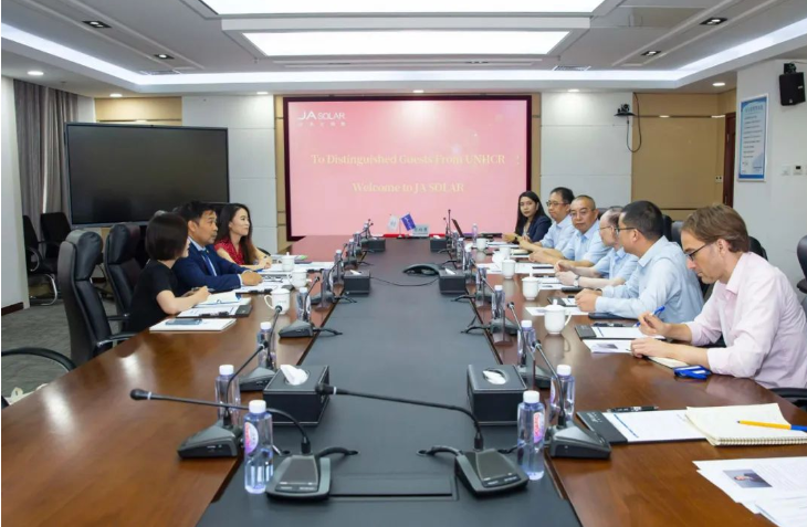 晶澳科技董事長靳保芳對盧沛赫代表一行表示熱烈歡迎,他表示,聯(lián)合國難民署多年來的工作偉大而神圣,與晶澳“開發(fā)太陽能、造福全人類”的初心使命是一致的,晶澳歷來熱衷于慈善工作,希望通過雙方合作,為全球難民事務(wù)做出晶澳貢獻(xiàn)。