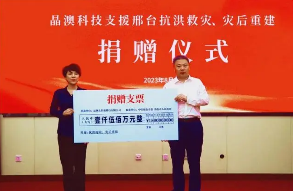 晶澳科技支援邢臺(tái)抗洪救災(zāi)、災(zāi)后重建捐贈(zèng)儀式