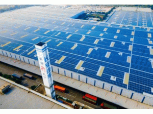 烈日當(dāng)空,走進(jìn)位于重慶兩江新區(qū)的長(zhǎng)安汽車(chē)魚(yú)嘴生產(chǎn)基地,只見(jiàn)一排排光伏電板整齊排列于廠房屋頂,在陽(yáng)光的照射下,正源源不斷地產(chǎn)生清潔電能。