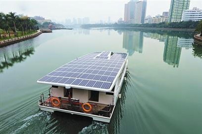 據(jù)介紹,這一由玻璃鋼制成的游艇長15米,寬6米,重3噸,船頂太陽能面板面積達90平方米,太陽能所產(chǎn)生的能量轉(zhuǎn)化儲存為電能,為船上各種電器用設備提供用電,無污染、無噪音、零排放,是城市內(nèi)河、湖泊、水庫等水域旅游觀光理想的節(jié)能環(huán)保船只。