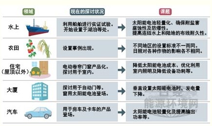 圖1 新領域配備太陽能電池的探討狀況及課題