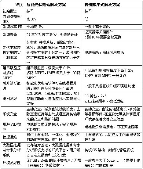 三.智能光伏電站解決方案與傳統(tǒng)光伏電站解決方案差異一覽表