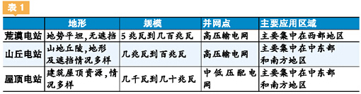 按照光伏電站安裝環(huán)境的不同,光伏電站一般分為荒漠電站、屋頂電站及山丘電站三種。(見表1)