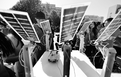 制作者正在講解以太陽(yáng)能發(fā)電為基礎(chǔ)的停車場(chǎng)模型 攝/記者 郭謙 奶油膠制作的手機(jī)殼、廢舊礦泉水瓶制作的電燈罩、純手工制作的皮質(zhì)錢包……上午,北京服裝學(xué)院的校園里聚集了來(lái)自30多所院校的同學(xué)們到此擺攤曬原創(chuàng)! 〗裉欤暗谒膶檬锥即髮W(xué)生創(chuàng)意集市”在北京服裝學(xué)院開(kāi)市。來(lái)自