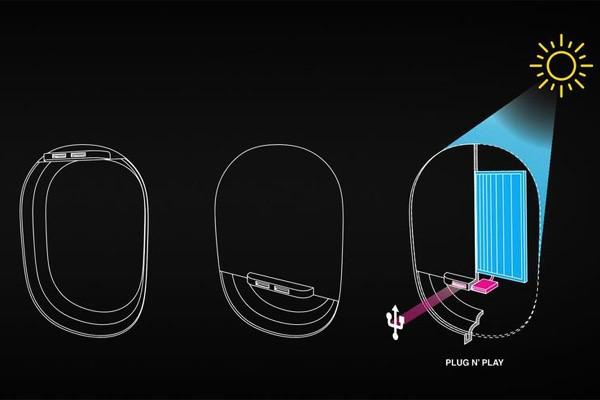 本來在空中太陽的能量就更高,在窗戶上配置太陽能蓄電池和USB接口即可。如此一來,乘客就可以輕松把設(shè)備連接至此處充電了,也不會(huì)浪費(fèi)機(jī)上的蓄電電源。