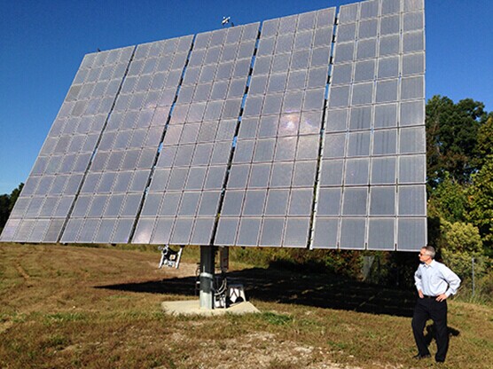 斯科特·伯勒斯(ScottBurroughs)站在一塊Semprius的太陽(yáng)能系統(tǒng)前