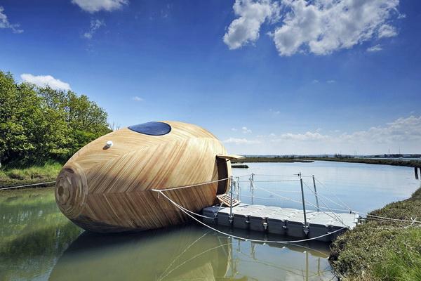 這款“Exbury Egg”相對(duì)來(lái)說(shuō)簡(jiǎn)單一些,更像是手工制作而成,它是一個(gè)蛋形的浮動(dòng)小屋,可以停靠在岸邊,內(nèi)部擁有吊床、火爐、書(shū)桌和衛(wèi)生間,非常適合一個(gè)人在山清水秀的地方體驗(yàn)回歸自然的生活。