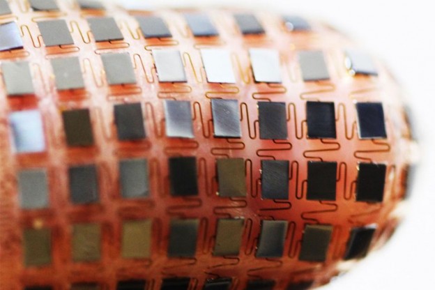 不過(guò),光做可撓式電池組還不夠,Rogers 與團(tuán)隊(duì)研發(fā)出了進(jìn)化版、可自行充電的電池組。科學(xué)家們?cè)谝粋(gè)個(gè)瓦片形狀的小電池上,放上極小型的太陽(yáng)能板,并在薄型彈性材質(zhì)的表面上放置數(shù)個(gè)傳感器,就成了厚度僅 2.5 毫米的醫(yī)療用穿戴感測(cè)設(shè)備,團(tuán)隊(duì)聲稱,這種設(shè)備“可持續(xù)不斷地提供生物感測(cè)器的資料與數(shù)據(jù)”,且最長(zhǎng)可延伸達(dá)原長(zhǎng)度的 30%,還能維持正常運(yùn)作。