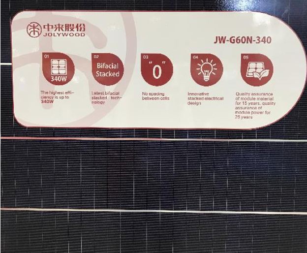 中來展出的N型雙面產(chǎn)品,最高功率為340W