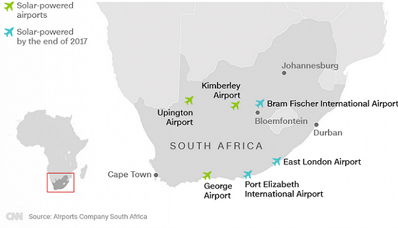在南非已經(jīng)起航或即將起航的這六座太陽能機(jī)場,不僅改變了南非能源問題,也將引領(lǐng)這片大陸走向光明大道。