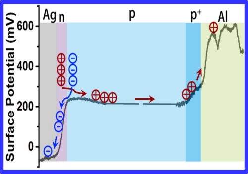 近日,北京大學(xué)深圳研究生院新材料學(xué)院潘鋒教授課題組將提高硅太陽能電池效率的機(jī)理研究及開發(fā)新型銀柵線的新技術(shù)和新材料作為重要的研究方向,并作為所承擔(dān)的廣東省創(chuàng)新團(tuán)隊(duì)重大項(xiàng)目的核心任務(wù)之一。在提高硅太陽能電池效率的機(jī)理方面,研究團(tuán)隊(duì)是國際上首次利用原子力顯微鏡的開爾文探針(Kelvin probe force microscope,KPFM)對(duì)晶體硅太陽能電池不同界面之間的表面電勢(shì)進(jìn)行探測(cè),發(fā)現(xiàn)了不同界面之間的表面電勢(shì)變化與晶體硅太陽能電池轉(zhuǎn)換效率之間的關(guān)系。這一發(fā)現(xiàn)使得團(tuán)隊(duì)對(duì)晶體硅太陽能電池的工作原理有了更深刻的認(rèn)識(shí),對(duì)改善晶體硅太陽能電池性能、提升太陽能轉(zhuǎn)換效率提供了重要的理論依據(jù)。相關(guān)研究成果近期發(fā)表在國際能源材料領(lǐng)域頂級(jí)期刊Nano Energy(Nano Energy 36 (2017)303-312,影響因子IF=11.6)。該工作由潘鋒教授指導(dǎo),2014級(jí)碩士生陳勇吉和博士后張明建共同完成。