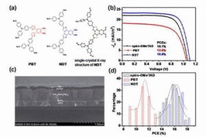 崔彬彬及其合作者設(shè)計(jì)合成了分別以“鄰二噻吩苯”和“萘并雙噻吩”為核心π-bridge的兩種低成本三芳胺類衍生物PBT和NDT,并將在這兩種Donor-π-Donor構(gòu)型的有機(jī)小分子作為空穴傳輸層材料應(yīng)用于鈣鈦礦太陽(yáng)能電池器件中,是有潛在應(yīng)用價(jià)值的鈣鈦礦太陽(yáng)能電池空穴傳輸材料。