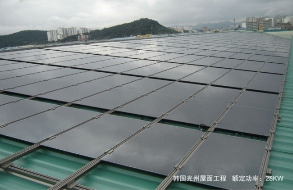 這種方式是在原屋頂加裝太陽能發(fā)電方陣,必然要破壞原屋面結構,還需作防漏水處理,更嚴重的是太陽能方陣散熱不好,由于太陽電池發(fā)電具有負溫度系數,因散熱不好溫度升高導致電壓下降,減少了發(fā)電量,縮短了太陽能電池使用壽命,且很難實現與建筑的集成。采用我們所提出的高平整度太陽能發(fā)電整體屋頂技術,不僅可節(jié)約屋頂建造費每平方米四到六佰元費用,還增加了建筑的整體性,使建筑物更加完美。