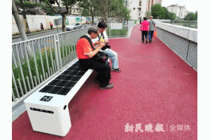 近日,一種新型的“智能坐凳”首次出現(xiàn)在蘇州河長(zhǎng)寧段,該坐凳表面有太陽能光伏板吸收能量,還具有無線充電、藍(lán)牙模塊、WLAN、音響、LED感應(yīng)燈等多種便民的智能功能,市民游客在蘇州河邊休閑小憩時(shí)還能享受智能化帶來的便捷和時(shí)尚。