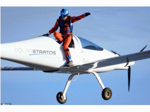 瑞士貝耶納,瑞士冒險(xiǎn)家Raphael Domjan帶著降落傘從太陽(yáng)能飛機(jī)SolarStratos上跳下,試圖創(chuàng)造兩項(xiàng)世界紀(jì)錄。