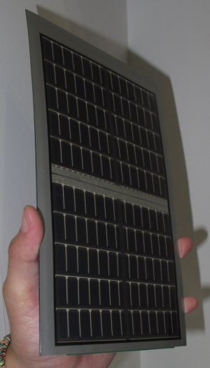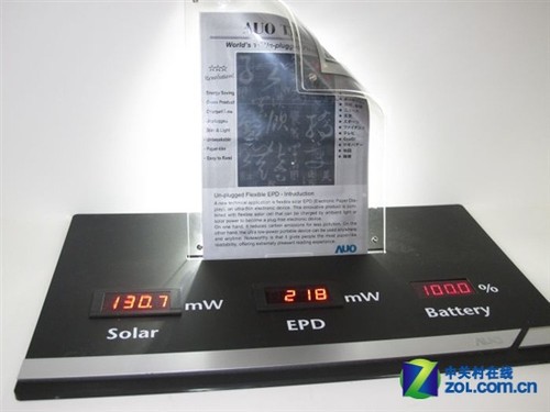 友達(dá)光電在日本橫濱召開的國際平面顯示器展上公開發(fā)布了一款完全以太陽能驅(qū)動,可彎曲卷起的6英寸有機(jī)TFT電紙書,分辨率為SVGA級別(800×600)。