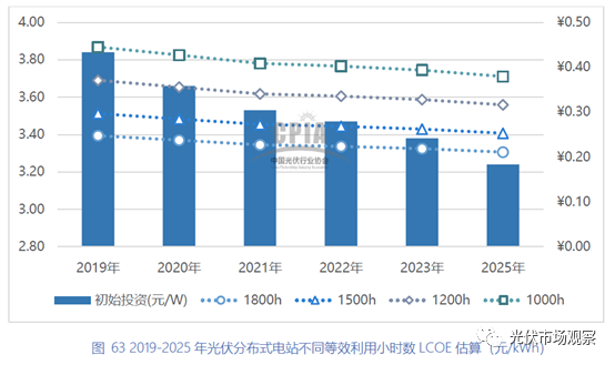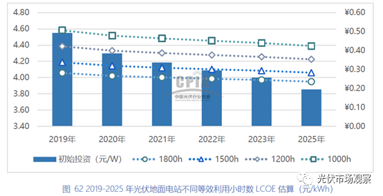 中國光伏行業(yè)協(xié)會(huì)《中國光伏產(chǎn)業(yè)發(fā)展路線圖》對(duì)不同利用小時(shí)數(shù)的度電成本進(jìn)行了分析如下: