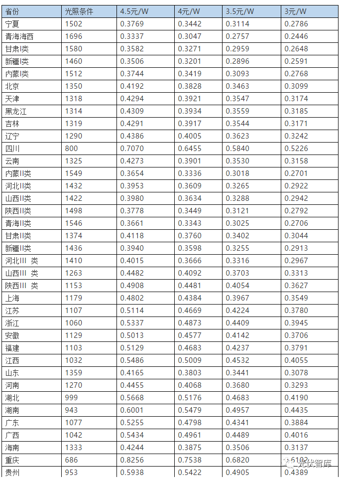 1、全國光伏度電成本測算