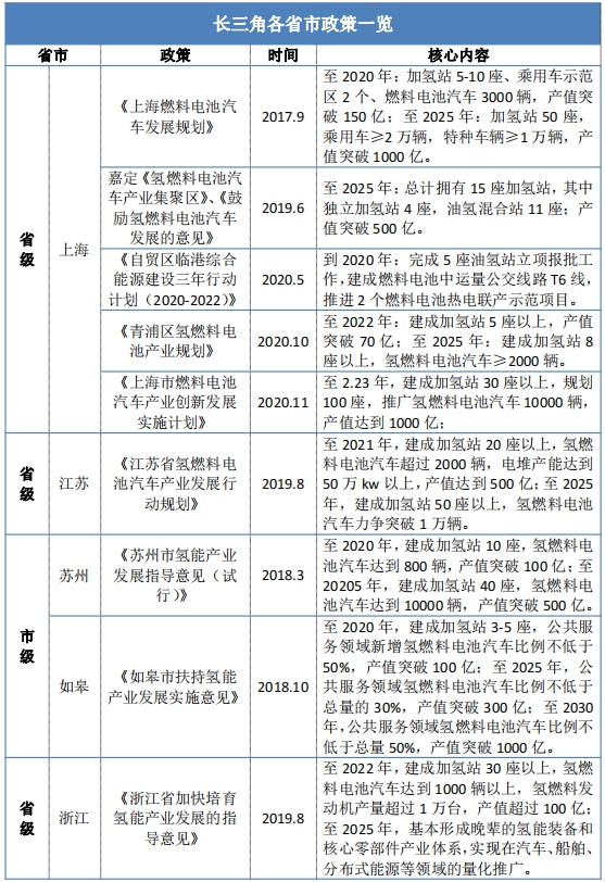 本文從政策規(guī)劃、產(chǎn)業(yè)鏈上中下游企業(yè)布局、基礎(chǔ)設(shè)施建設(shè)情況、產(chǎn)業(yè)園建設(shè)情況以及燃料電池汽車運(yùn)營情況等方面梳理了長三角地區(qū)的氫能產(chǎn)業(yè)現(xiàn)狀。