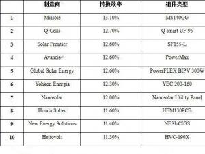 太陽能光伏行業(yè)發(fā)展至今最為人詬病的一項就是發(fā)電成本較高,而光伏組件轉(zhuǎn)換效率是其中的關(guān)鍵因素。提高光伏組件的轉(zhuǎn)化效率是普及太陽能發(fā)電應(yīng)用的重中之重。幾年前,著名薄膜電池板制造企業(yè)Nanosolar提出了太陽能產(chǎn)業(yè)的“三次技術(shù)革新浪潮”概念。將以太陽能級硅和硅片為原材料的晶體硅電池作為第一次技術(shù)革新浪潮;將薄膜太陽能電池列為第二次技術(shù)革新浪潮;最新一個是以柔性電池為代表。早在2000年,全世界太陽能光伏行業(yè)就定下了2020年的行業(yè)目標:(1)把單晶硅電池的轉(zhuǎn)換效率從16.5%提高到22%;(2)把多晶硅電池的轉(zhuǎn)換效率從14.5%提高到20%;(3)a-Si/uc-Si、CIGS和CdTe薄膜電池的轉(zhuǎn)換效率提高到10%-15%。值得慶幸的是,近幾年太陽能產(chǎn)業(yè)在這幾方面都取得了不小的進步。下面為您盤點一下到目前為止全球十大轉(zhuǎn)換效率最高的CI(G)S光伏組件。