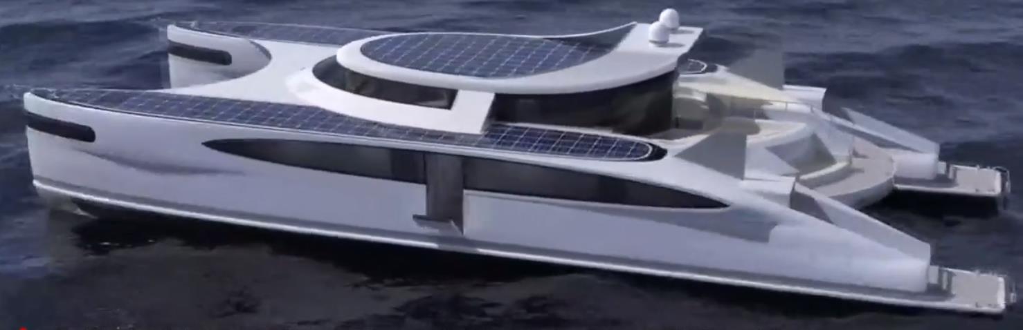 在游艇的浸水部分,船體的每一側(cè)都設(shè)計(jì)了一個(gè)凹形空間來容納兩個(gè)鋼制圓柱體,每個(gè)圓柱體都有一個(gè)螺旋形的法蘭,就像螺絲的螺紋一樣。在水中,螺旋圓柱體產(chǎn)生能量,在航行時(shí)為游艇電池充電。
