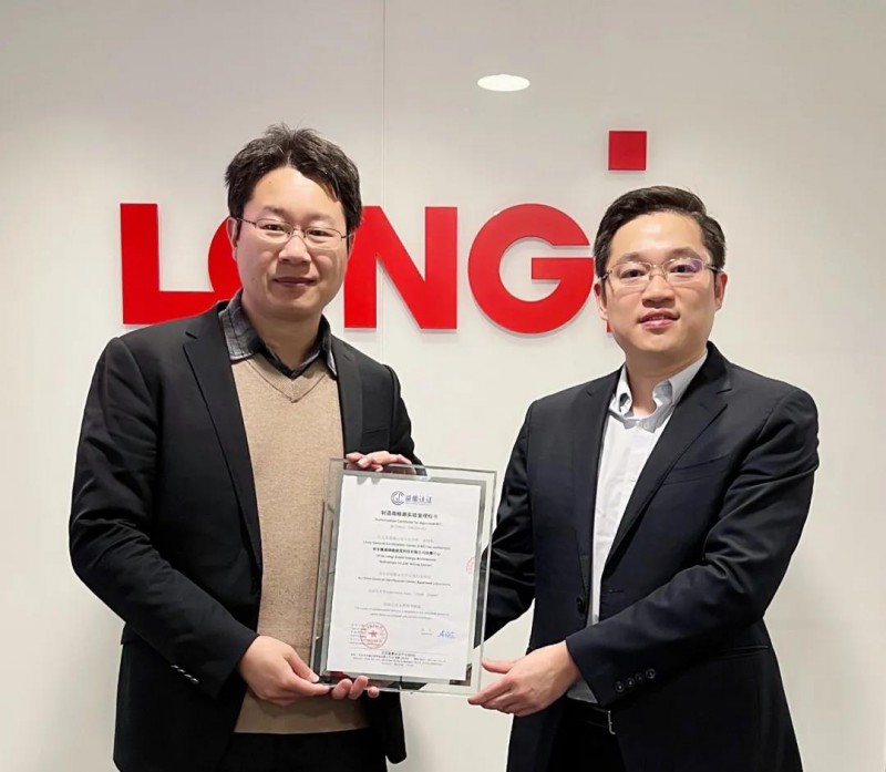 3月5日,鑒衡認(rèn)證中心為西安隆基綠能建筑科技有限公司檢測(cè)中心(以下簡(jiǎn)稱(chēng)“西安隆基綠建檢測(cè)中心”)頒發(fā)制造商檢測(cè)實(shí)驗(yàn)室授權(quán)書(shū),該資質(zhì)的授權(quán)體現(xiàn)了鑒衡對(duì)西安隆基綠建檢測(cè)中心測(cè)試能力的充分認(rèn)可,以及對(duì)隆基實(shí)驗(yàn)室全方位管理能力的肯定。西安隆基新能源有限公司產(chǎn)品研發(fā)總監(jiān)鄭直(左)、鑒衡太陽(yáng)能事業(yè)部總經(jīng)理周罡(右)出