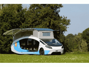 這個(gè)由22名學(xué)生組成的團(tuán)隊(duì)所建造的概念車(chē)被描述為一種“車(chē)輪上的太陽(yáng)能房屋”,車(chē)頂上配有一個(gè)8.8平方米的太陽(yáng)能電池板,可為60kWh的鋰離子電池組收集能量。