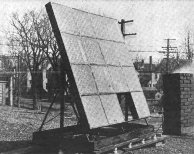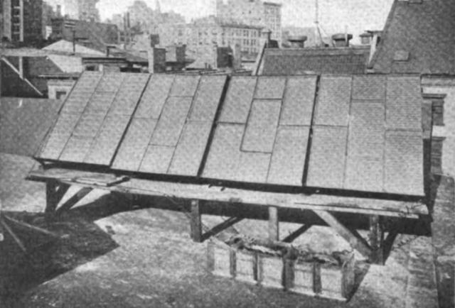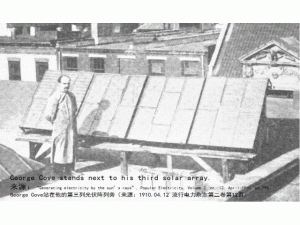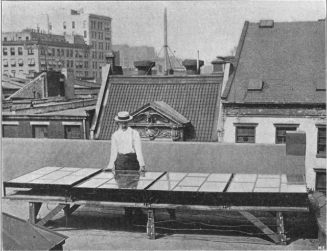 上圖:George的第一塊太陽能電池板,于 1905 年展示。資料來源:Technical World Magazine 11, nr.4,1909 年 6 月。