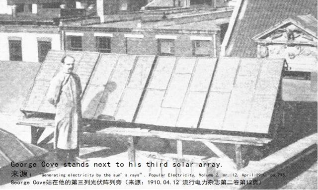然而顛覆三觀的是,最新的探索發(fā)現(xiàn),早在1905年,也就是愛因斯坦首次解釋光電效應(yīng)后一年,或者說在貝爾實(shí)驗(yàn)室工程師發(fā)明硅電池之前 40 年,一位名叫George Cove的太陽能先驅(qū),他可能就已經(jīng)建造了一個高效的光伏系統(tǒng)。