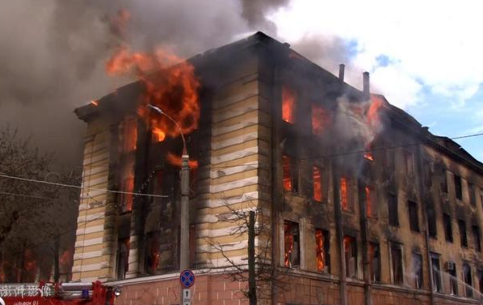 當(dāng)?shù)貢r(shí)間21日,該研究院突發(fā)大火,現(xiàn)場(chǎng)濃煙滾滾,有人跳窗逃生。俄軍出動(dòng)米-8直升機(jī)進(jìn)行滅火。過(guò)