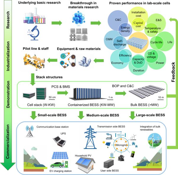 圖1.電網(wǎng)級(jí)大規(guī)模儲(chǔ)能電池的開(kāi)發(fā)和應(yīng)用。