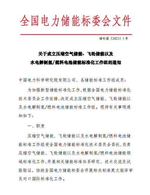 據中電聯(lián)標準化管理中心消息,為加強新型儲能標準化工作, 在國家能源局、中國電力企業(yè)聯(lián)合會標準化管理中心指導下,全國電力儲能標準化技術委員會成立壓縮空氣儲能、飛輪儲能以及水電解制氫/燃料電池儲能標準化工作組。壓縮空氣儲能、飛輪儲能以及水電解制氫/燃料電池儲能標準化工作組負責壓縮空氣儲能、飛輪儲能以及水電解制氫/燃料