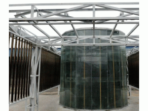 記者在現(xiàn)場看到,首臺“太陽能水塔”樣品近4米高,鋼化玻璃里,一層鋼板包裹著水體,鋼板外面涂裝吸熱的黑色防銹漆。水塔水面漂浮著特制的吸熱片等裝