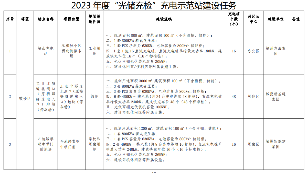 2023年度“光儲(chǔ)充檢”充電示范站建設(shè)任務(wù)如下: