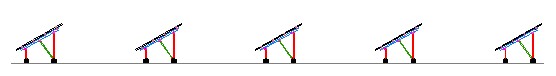 某工程光伏單元排布方式為2行10列(豎排),單元前后間隔8000mm,組件傾角30o,組件規(guī)格1650mmX 990mmX40mm,組件最低點的離地高度為600mm。工程地點的地面粗糙度為B類,場地最大風速30 m/s。