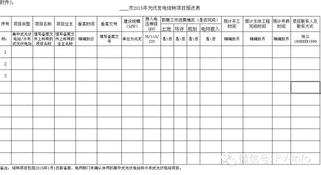 二、各市要在分解下達(dá)的新增建設(shè)規(guī)模內(nèi),抓緊確定新增項(xiàng)目清單(附件2);超出本市規(guī)模的項(xiàng)目,視同無效。同時(shí),將往年結(jié)轉(zhuǎn)在建的集中式光伏電站和分布式光伏電站項(xiàng)目(附件3),于4月10日前一并上報(bào)我委,我委將據(jù)此形成全省2015年光伏發(fā)電建設(shè)實(shí)施方案上報(bào)國家。