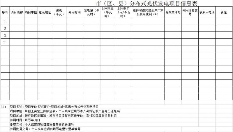 附件:市(縣)分布式光伏發(fā)電項目信息表