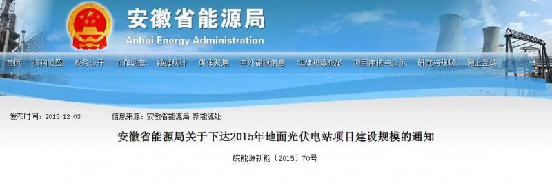 各市發(fā)展改革委,省電力公司: 根據(jù)《國(guó)家能源局關(guān)于下達(dá)2015年光伏發(fā)電建設(shè)實(shí)施方案的通知》(國(guó)能新能〔2015〕73號(hào))、《國(guó)家能源局關(guān)于調(diào)增部分地區(qū)2015年光伏電站建設(shè)規(guī)模的通知》(國(guó)能新能〔2015〕356號(hào))和《安徽省能源局關(guān)于進(jìn)一步加強(qiáng)光伏電站項(xiàng)目開發(fā)管理的通知》(皖能源新能〔2015〕26