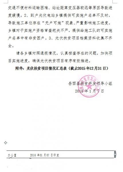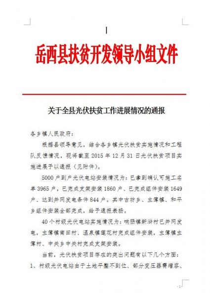安徽省岳西縣光伏扶貧工作進(jìn)展情況