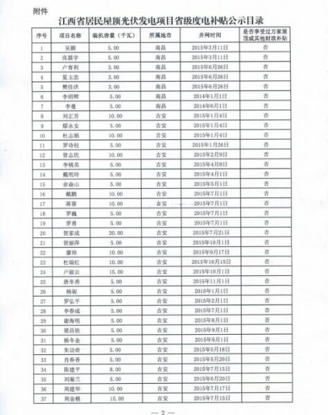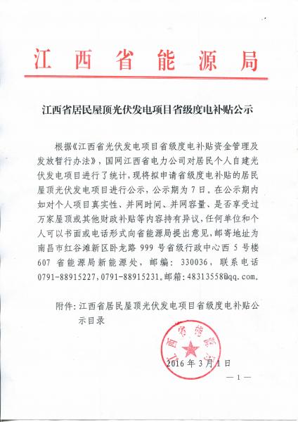 江西省居民屋頂光伏發(fā)電項(xiàng)目省級(jí)度電補(bǔ)帖公示