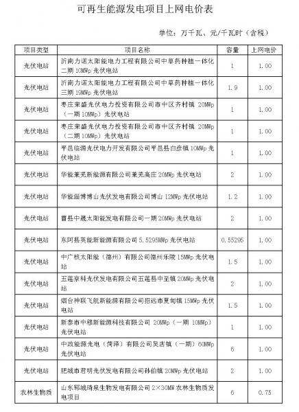 關(guān)于東平浩源光伏發(fā)電有限公司等可再生能源發(fā)電項(xiàng)目上網(wǎng)電價(jià)的批復(fù)(魯價(jià)格一發(fā)〔2016〕61號(hào))、關(guān)于沂南力諾太陽(yáng)能電力工程有限公司等可再生能源發(fā)電項(xiàng)目上網(wǎng)電價(jià)的批復(fù)(魯價(jià)格一發(fā)〔2016〕59號(hào))):